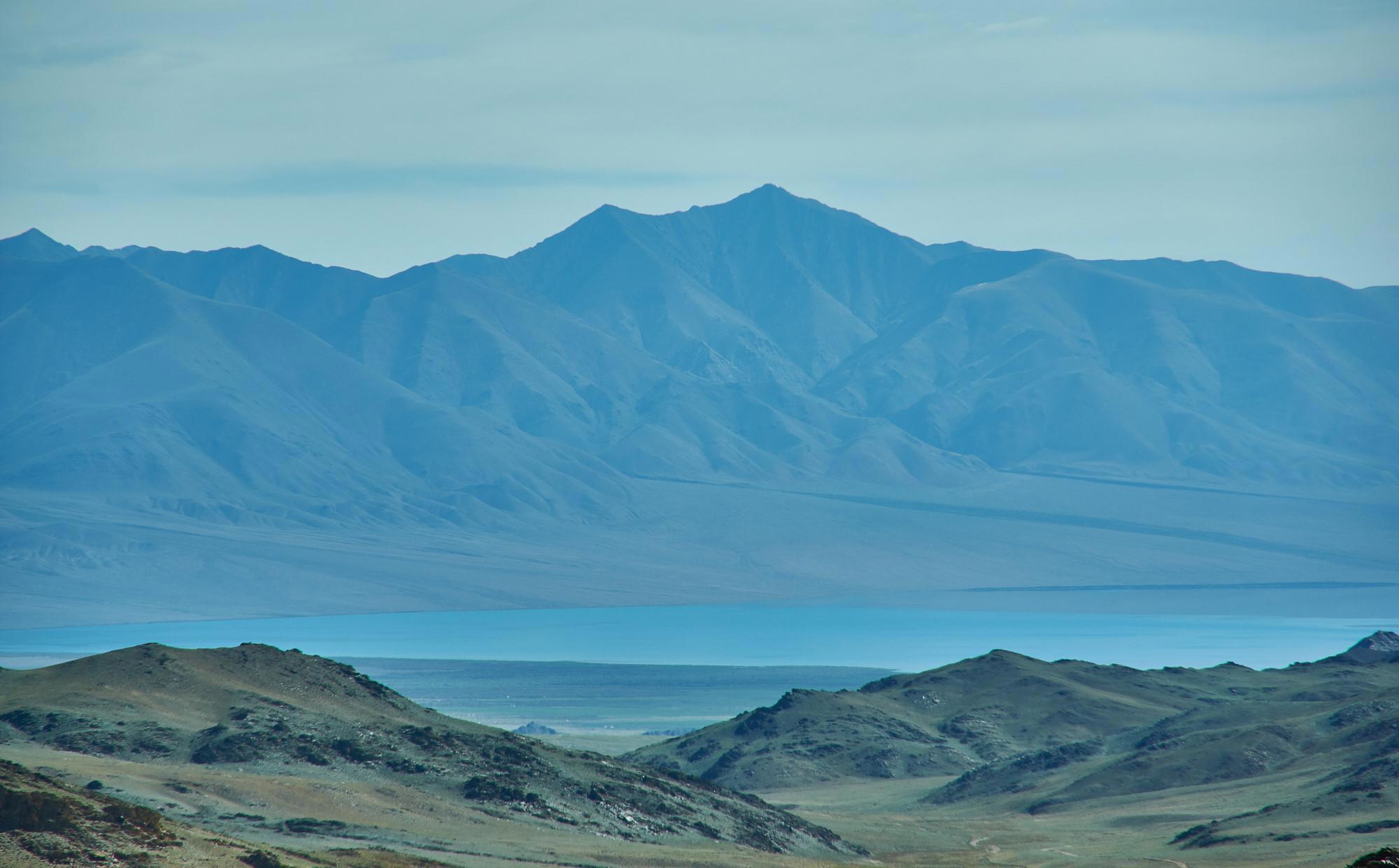 Дорога поднимается все выше и выше, позади можно увидеть Убсу-Нур.