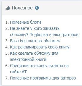 В-третьих, почему здесь полезно быть автору для прокачки, - много проф.полезностей, которыми делятся как сами писатели в своих блогах, так и администрация (пополняемый раздел "Полезное" внизу справа):