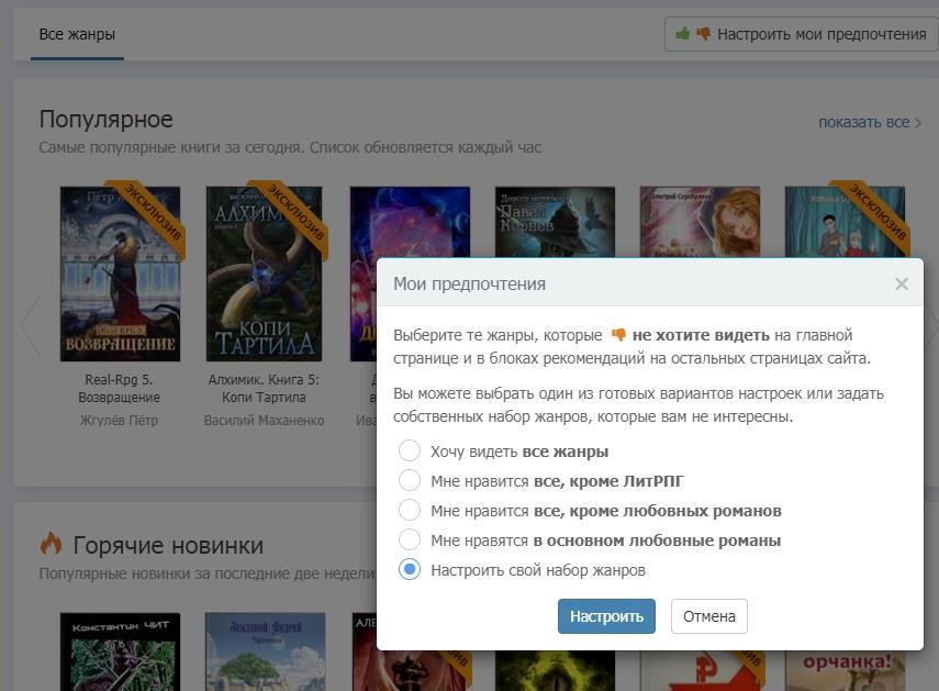 4) Удобные настройки всего, что только можно. Например, можно настроить, какие жанры вы хотите видеть на главной: