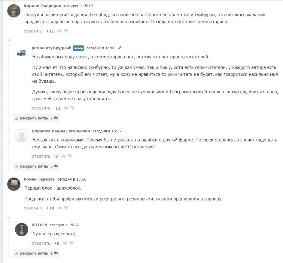 (а раз нет комментов, то вы не попадаете в колонку "комменты" справа, и вас опять не видят). Да и в верхние виджеты на главной странице сайта гораздо-гораздо сложнее попасть, то есть читателю вас случайно заметить труднее, а значит, вам же придется прикладывать больше сил на поиски и "притягивание" своих читателей (например, можно бесплатно пиариться в официальных группах в ВК- Author Today | Автор Тудей - Книги онлайн - больше для мальчиков - Литрпг и боевки - и Author Today | Женский взгляд - больше для девочек