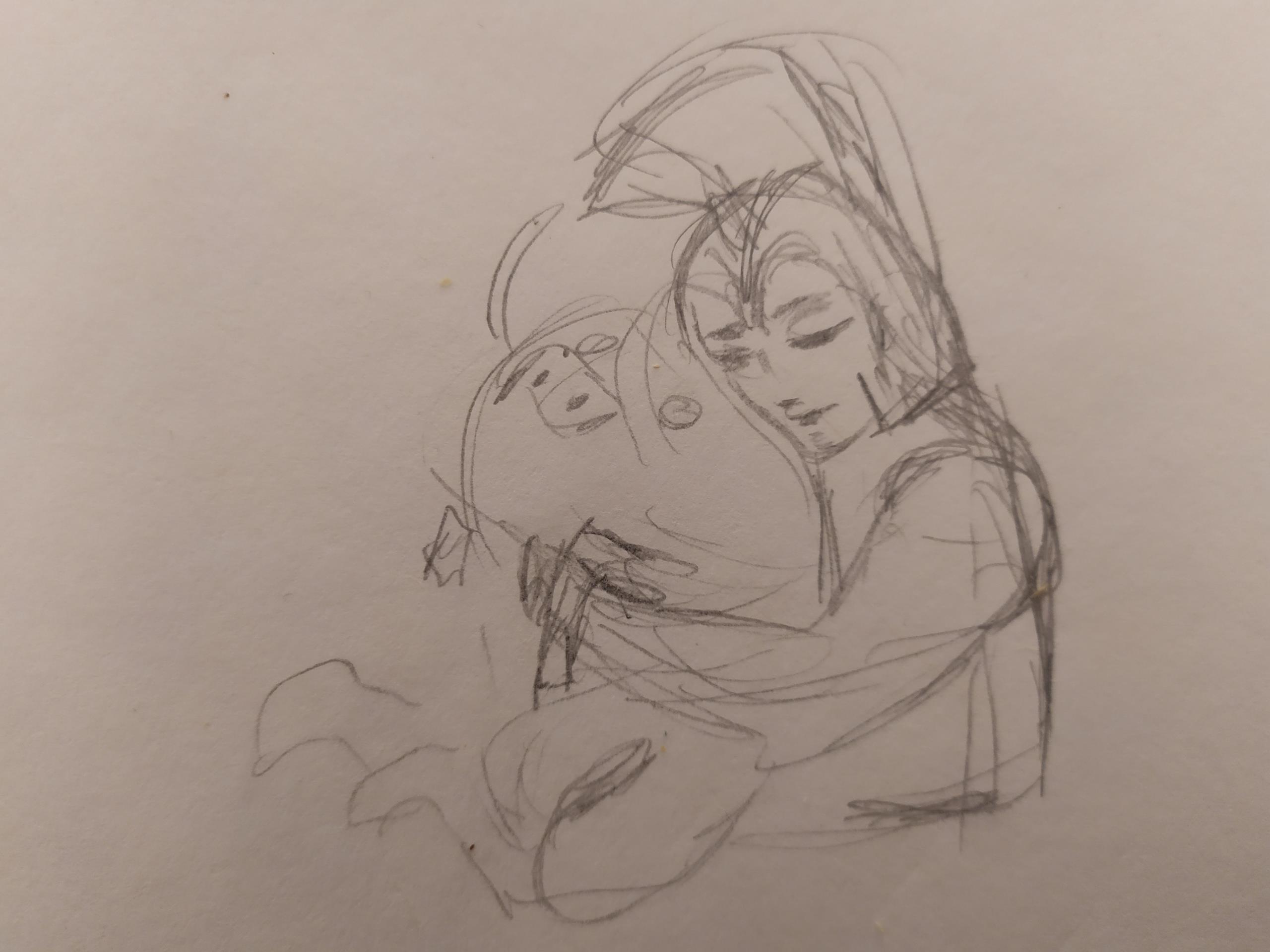 Обычно я скетчу пятнами, но на этот раз комп был занят и вчера идея была накидана в скетчбуке