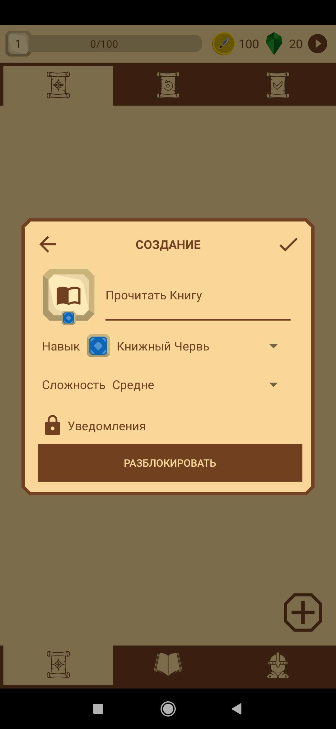 В данном приложении тебе дают возможность создавать не только собственные квесты, которые ты должен будешь выполнять в реальной жизни, но и соответствующие навыки для выполнения этих самых квестов.