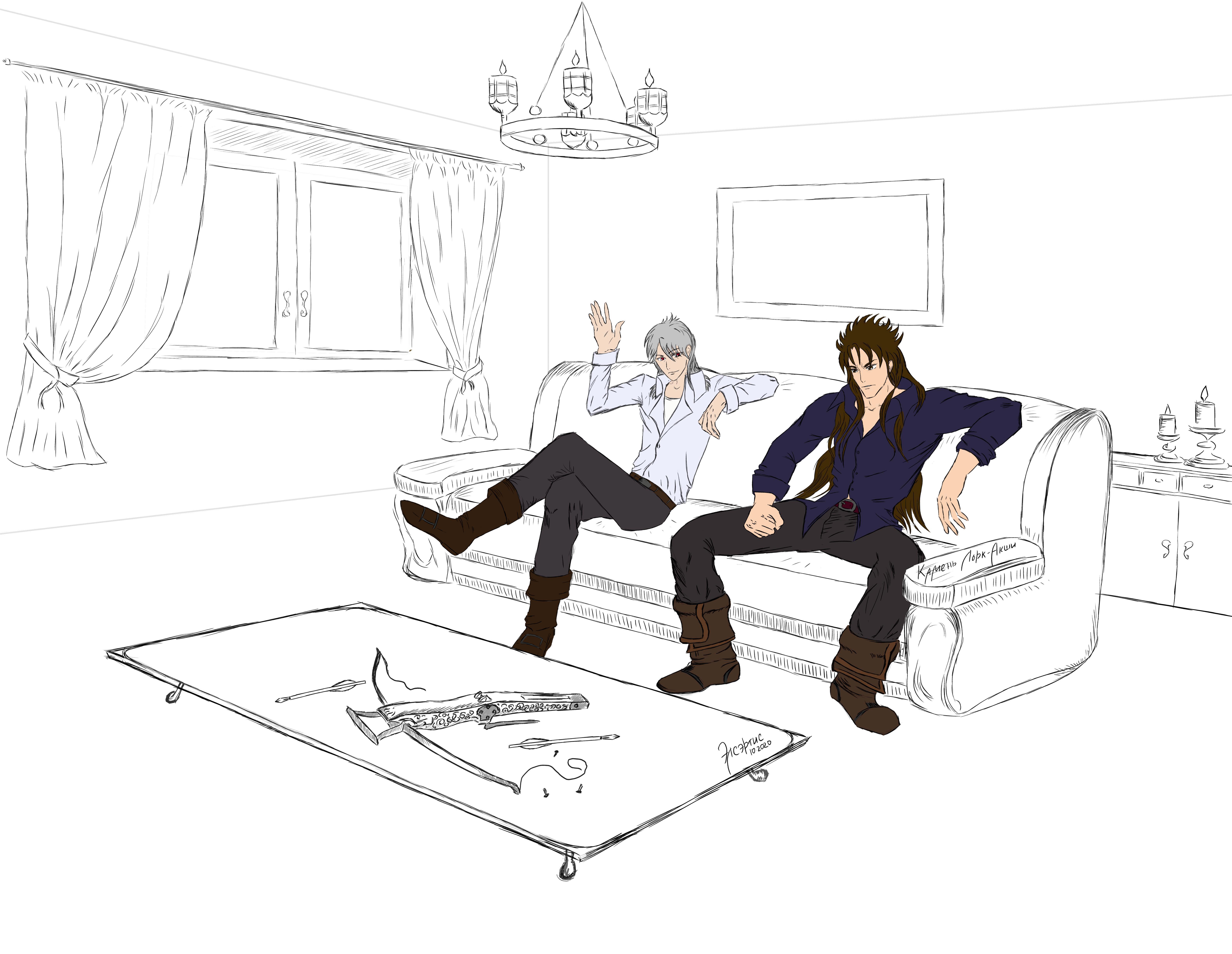 Лоренс (тот, кто справа), уже достаточно прорисованный. А Ольтер пока лишь в виде безликого пятна - с умным видом восседает на безликом диване))