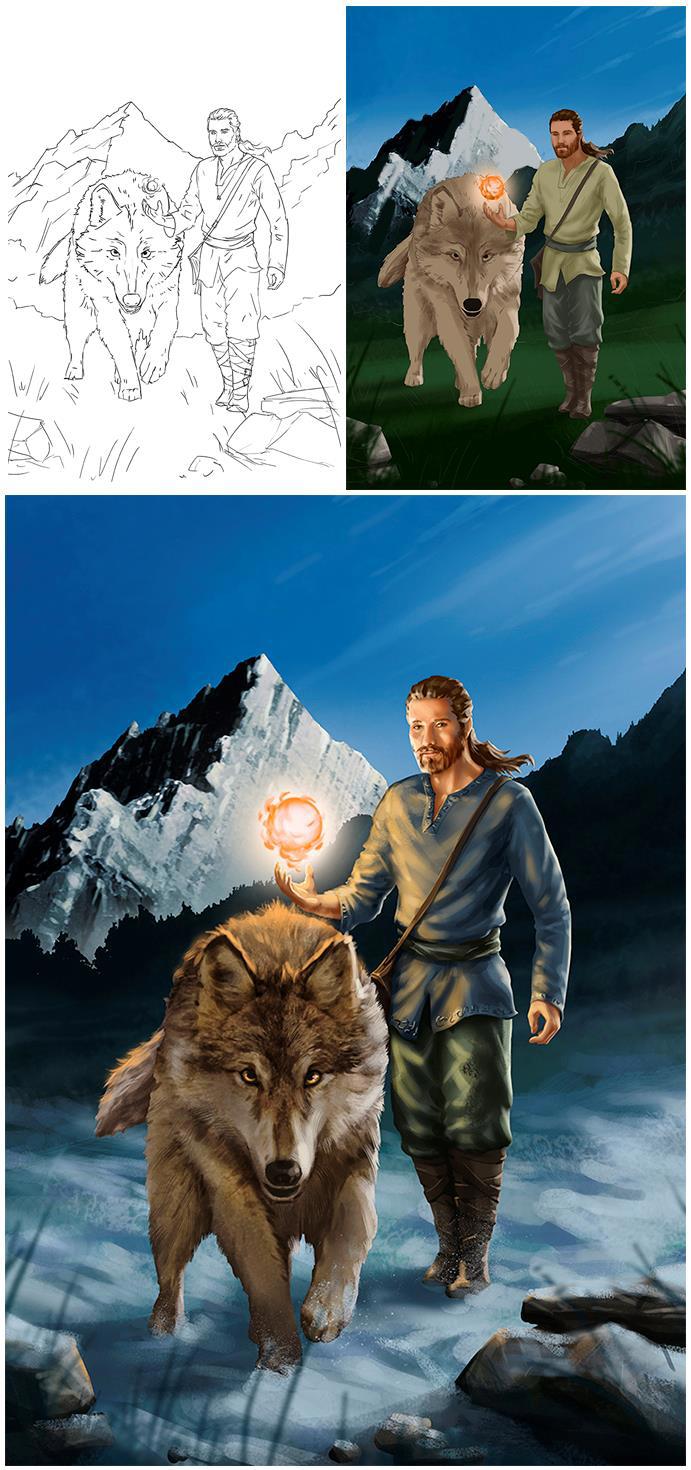 Автор: Салихов ВасильЭто уже вторая, выполненная мною, обложка для 3 тома романа "Озаренный Оорсаной - 3. Путь Воина" Константина Вайта. Работать пришлось внимательно и скрупулезно, и это не только из-за пушистого друга, но и в связи со сложным освещением самой сцены. Мне кажется получилось хорошо, но судить, как всегда, вам.) Короткая хронология ниже.
