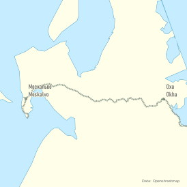 Как бы то ни было, к 1945 году южная часть Сахалина была опутана сетью железных дорог (как государственных, так и частных промышленных), тогда как на севере было построено на порядок меньше. В период с 1925 по 1945 г.г. в СССР предпринималось несколько попыток строительства транссахалинской магистрали от Александровска до Охи – центра нефтедобычи, но единственной крупной стройкой стала линия широкой колеи от порта Москальво до Охи. Она началась в 1930 году и велась в крайне суровых условиях. Приблизительно три тысячи человек работали в крайне тяжёлых условиях, так как значительная часть линии проходила по болотистой местности.