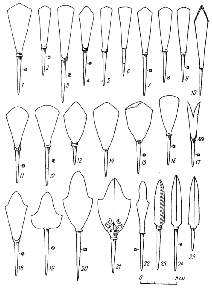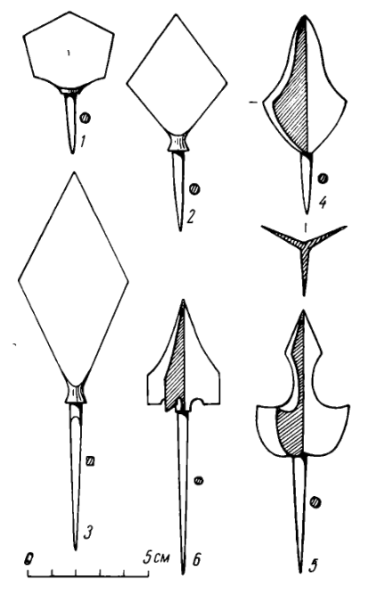О, как! Оказывается, кочевники «татаро-монголы» были хоть и супер, но были ещё суперее их кочевники, которые на самом деле и придумали для супермонголов их супернаконечники. Получается, что на самом-то деле это Сибирские кочевники были просто супер-пупер-кочевниками! Как их монголы победили – уму непостижимо. Но хорошо, что хорошо кончается. Зато монголы смогли умыкнуть у сибирских кочевников их супермастеров с их суперколенками, на которых те и ковали супернаконечники, которые оседлые мастера Европы в своих кузнях так и не допетрили сделать. «Вот тупые…» Правда в качестве иллюстрации сибирских наконечников тов. Медведев демонстрирует почему-то вот такие образцы: