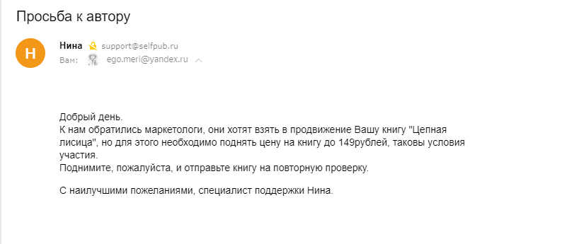 Я, конечно, цену подняла. И стала ждать. Никаких особых рывков в продажах не произошло. Но мне всё равно приятно знать, что литрес, по ходу, всё-таки рекламу какую-то крутит.