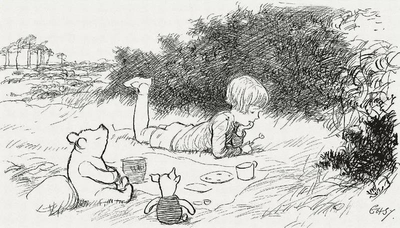 На классических иллюстрациях Шепарда персонаж Кристофера Робина был полностью срисован с внешности сына автора, плюшевый мишка также максимально приближен к реальной игрушке. Незадолго до смерти, Шепард выражал сожаление по поводу того, что вообще взялся рисовать "этого чертова медведя".