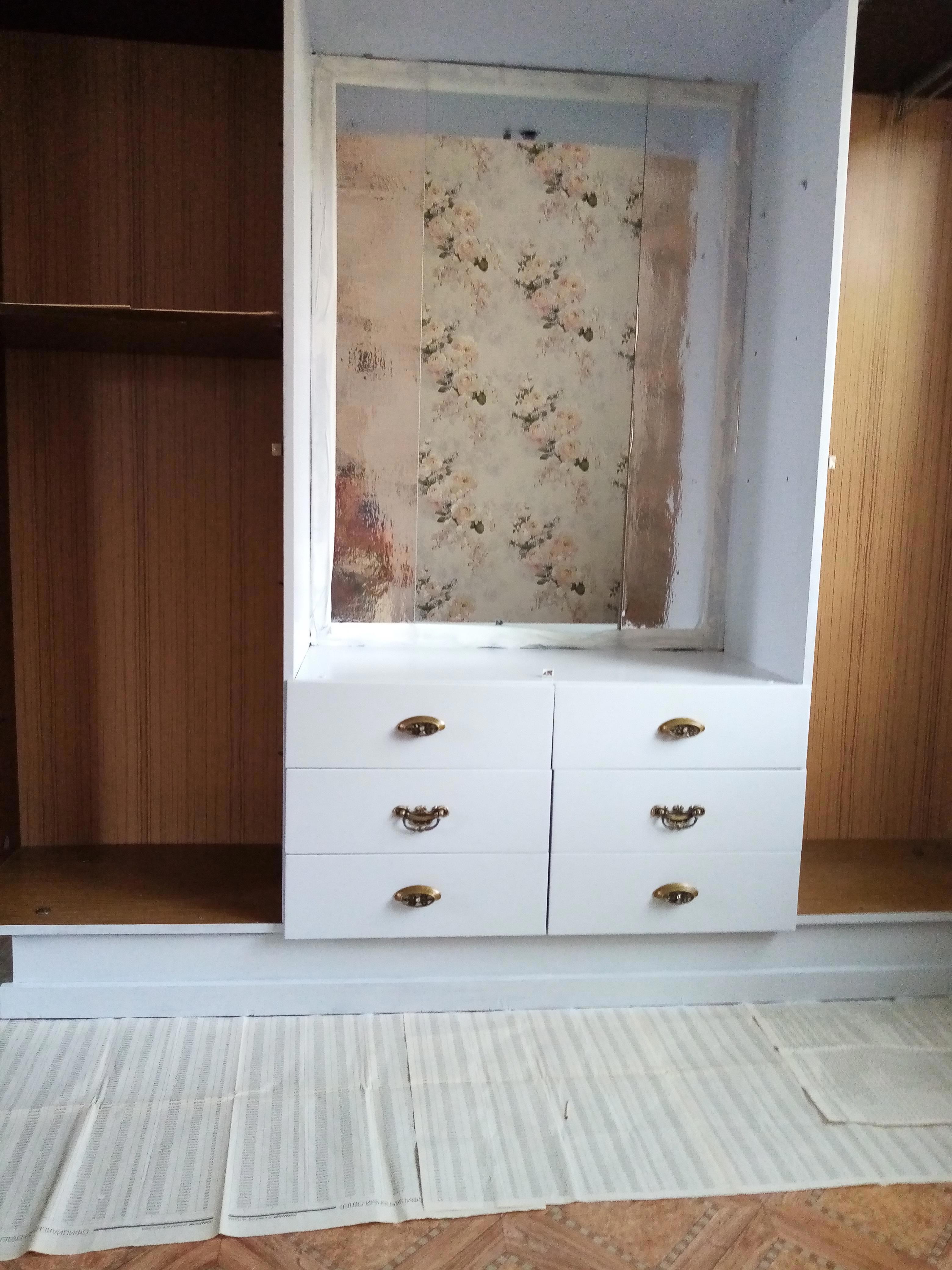 Кроме обоев в комнате у нас был шкаф, старый, доставшийся в наследство от бабушки, моей мечтой было избавиться от него, и начала канючить мужу, чтобы он согласился вынести его вместе со старыми обоями. Муж не согласился, тогда я поставила ультиматум: " если не избавимся от шкафа, то я его покрашу." Муж сказал : " крась" и радостно разобрал шкаф на составные части. А тут меня очень удачно уволили и я вплотную занялась предметом мебели.