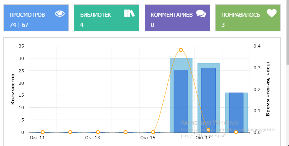 Автор: Альтер-ОмиВ пятницу опубликовала свою первую главу, а сегодня возник вопрос по статистике. Если по количеству читателей, просмотров , лайков и библиотек все понятно , то по времени просмотра возникаеют вопросы. Как они высчитывается ?