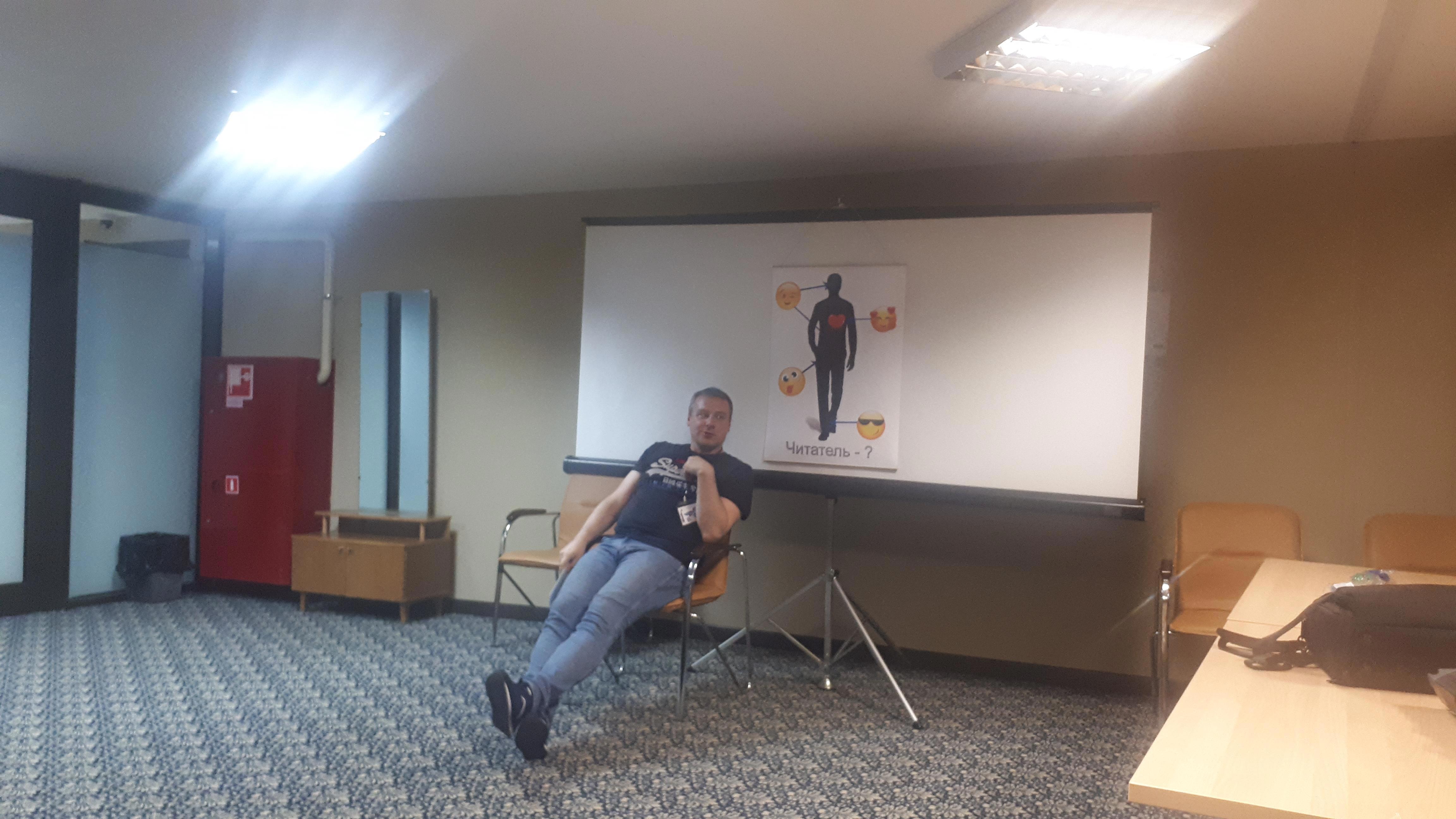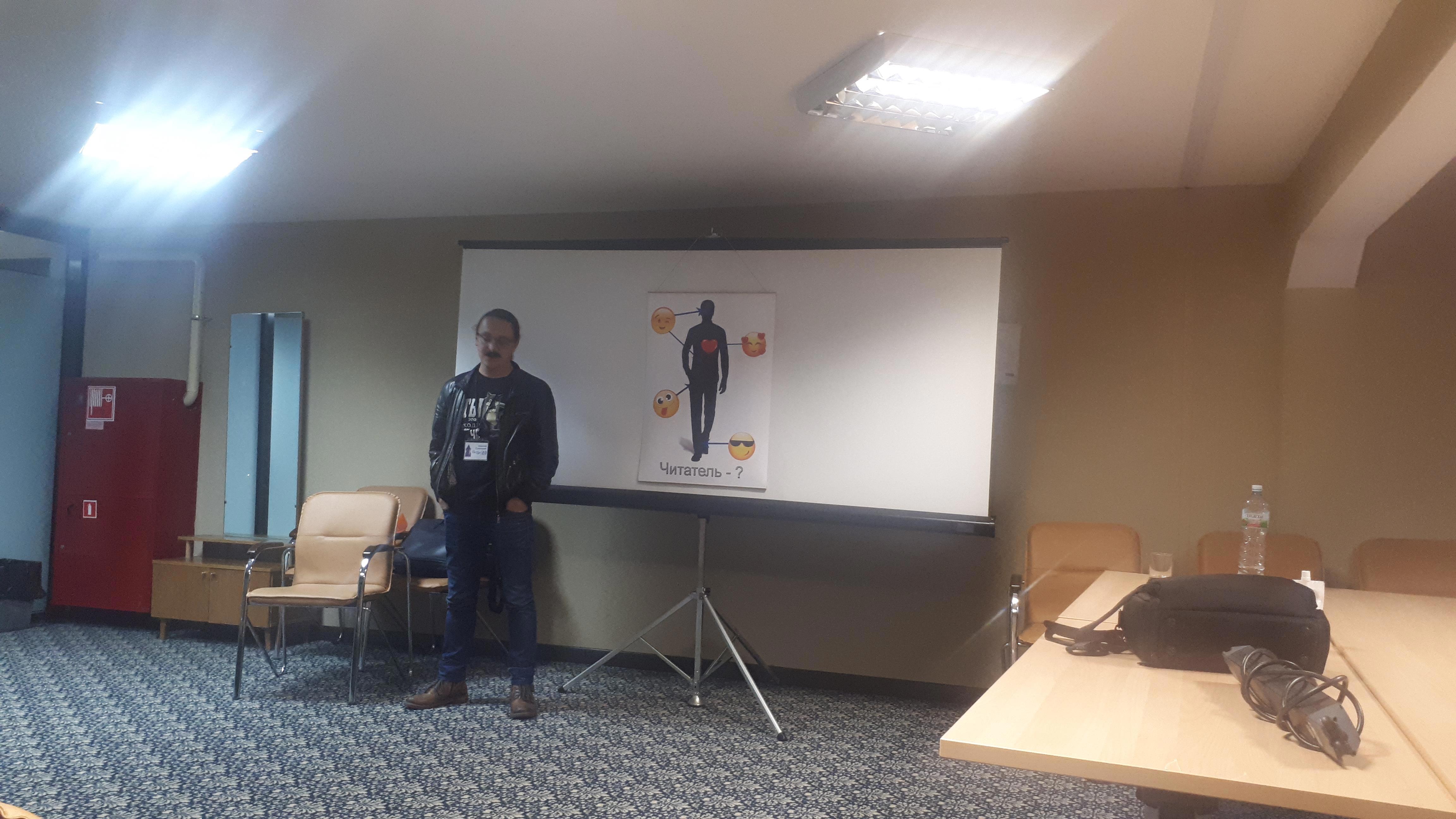 На следующий день были мастер-классы. На этот раз я во второй раз пошёл к Евгению Лукину, чтобы он и мои коллеги препарировали мой рассказ "Суета вокруг барана". Разбор был, как всегда, очень полезен - я знаю, что в моих старых рассказах множество огрехов и недочётов, но уже так прикипел к ним, что в упор не вижу шероховатостей. Ну а в целом все участники нашего мастер-класса молодцы, рассказ каждого было приятно читать.