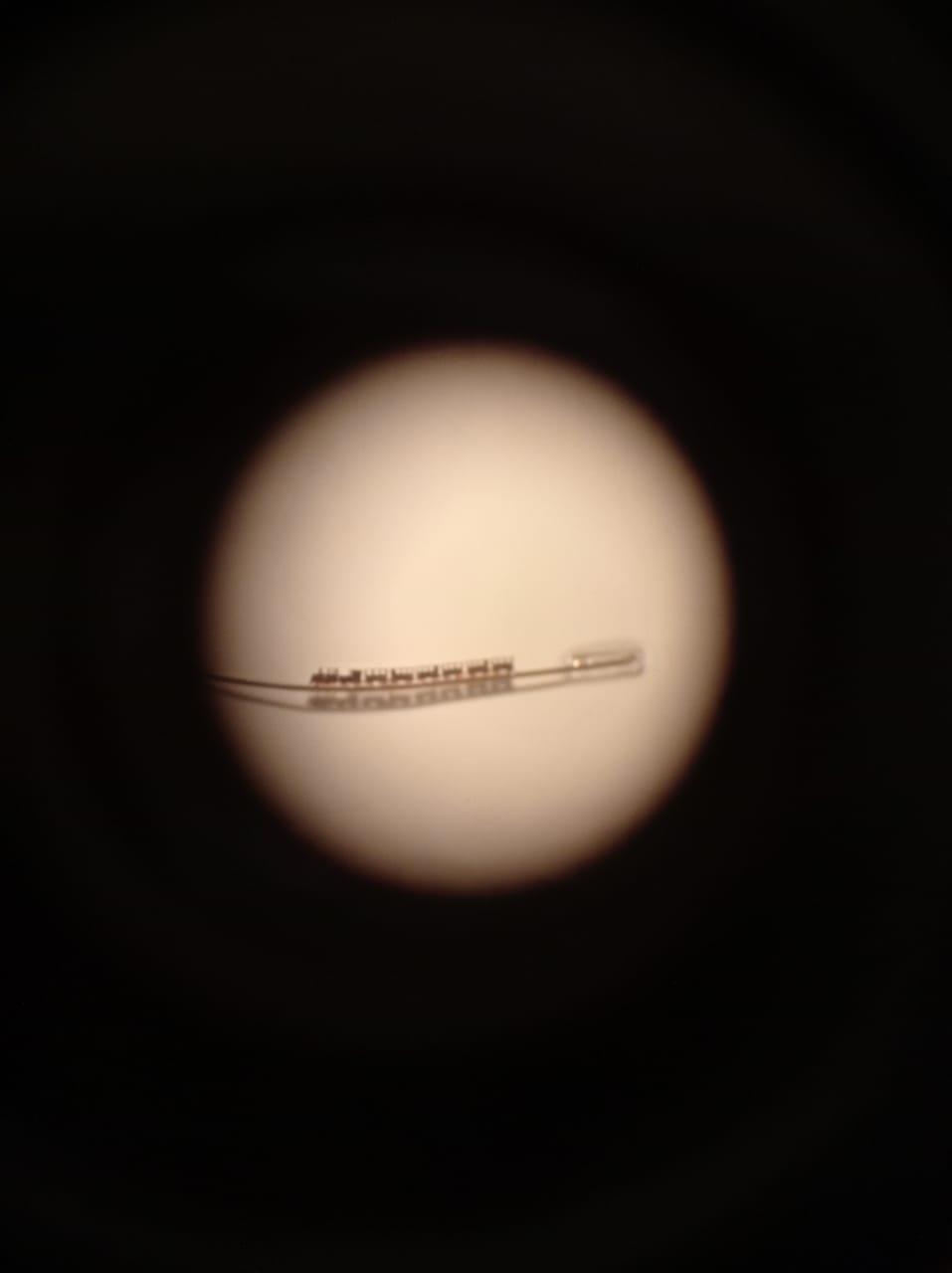 На телефон пытаться сфотографировать изображение в объективе микроскопа сложно, но я попытался: