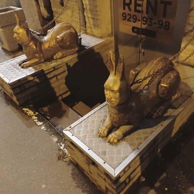 А завершу фотообзорчик вот этими, не побоюсь этого слова, всратыми зайцами-сфинксами на входе в закрытый бар неподалёку от Невского: