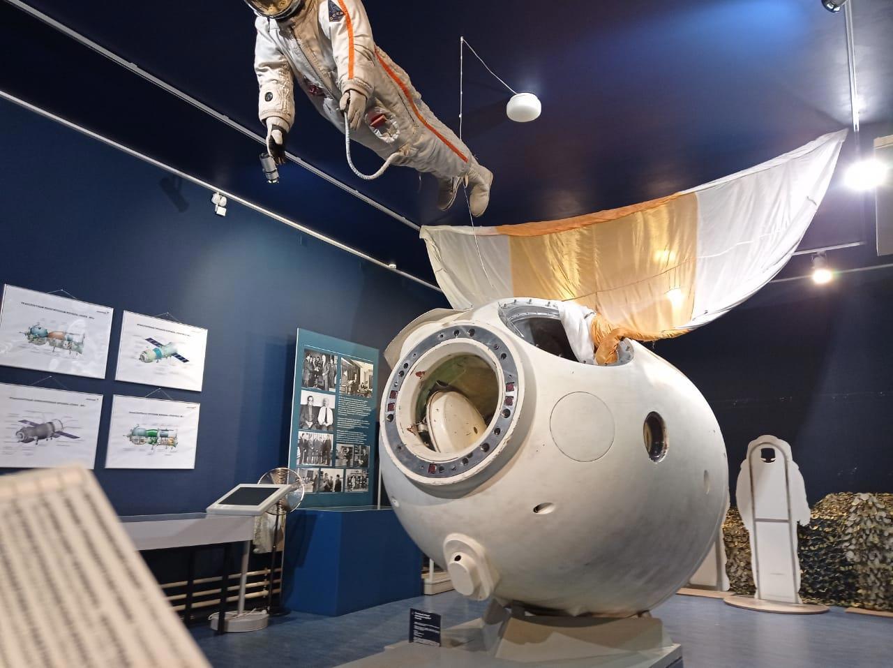 Перед входом - спускаемая капсула спутника БИОМ, изучавшего воздействие космоса на животных: