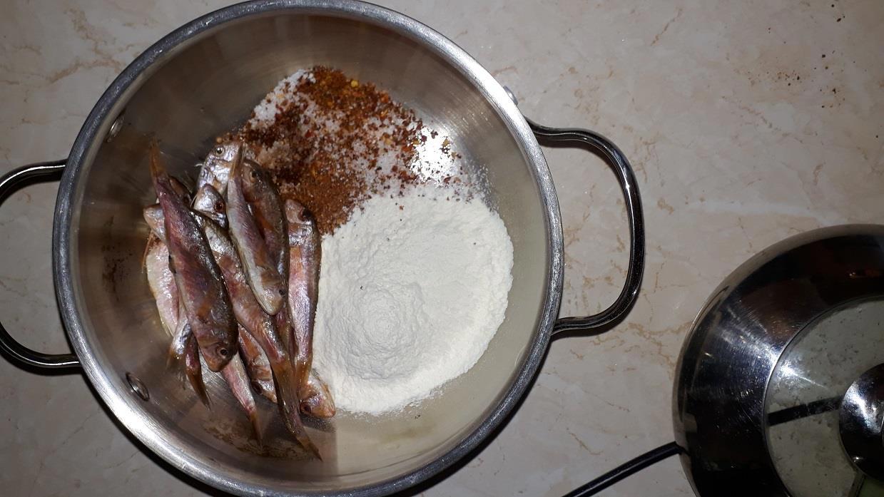 В данном случае барабулька, но подойдет любая мелкая рыба. В принципе полезно ее выпотрошить, но мне лень, я просто промываю и впоследствии от такого куртуазного допущения не страдаю. Так что просто промываем.