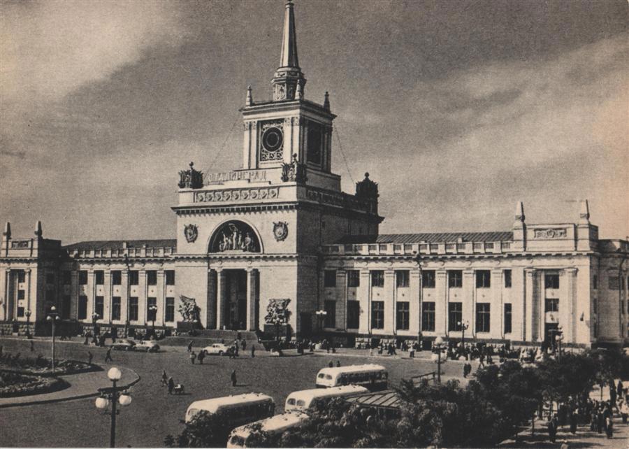 Автор: ЛиСиЦаСначала просто семнадцать фотографий здания вокзала, построенного в 1954 году и признанного памятником архитектуры в 1997-м. Фотографии пятидесятых - восьмидесятых годов расставлены в хронологическом порядке, поэтому при минимуме изменений самого здания (на первом фото - ещё в строительных лесах, на втором - пока ещё без часов) интересно проследить появление справа от вокзала троллейбусного кольца - маршрут №1 был запущен под новый 1961 год, а в 1965 над ним - того, что вопреки всем правилам волгоградцы называют Комсомольским или даже Железнодорожным Мостом. Фишка в том, что мостом в строительстве принято называть только, если он через водную преграду, а всё остальное - путепроводы, а Железнодорожный он не потому, что по нему проходят железнодорожные пути, а потому, что они под ним - тоже название вопреки всех правил. Фотографий мозаики внутри здания я не хочу приводить принципиально, потому что фотографии могут передать только фрагменты, а не целостное впечатление от неё. Это надо видеть вживую. Скульптурная композиция "Апофеоз труда" над главным входом, увы, утрачена в 2014 году. И не столько из-за теракта в декабре 2013 года, когда пострадала при взрыве, сколько из-за преступной безалаберности временщиков - была окончательно разрушена при демонтаже на реставрацию. Заменена на жалкую подделку.