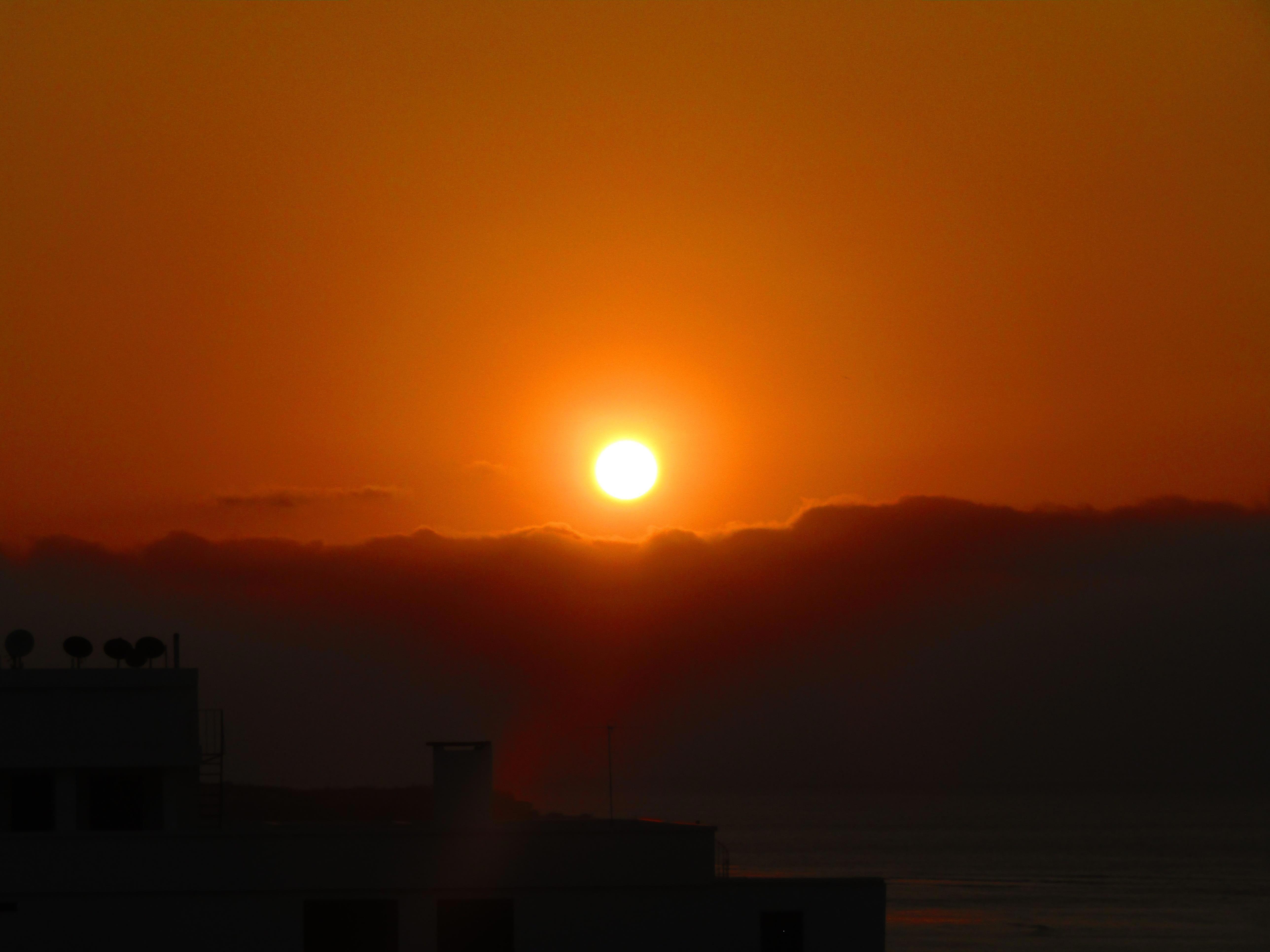 Если без облаков, то он чисто золотой и золотом этим окрашивает все, на что падает.