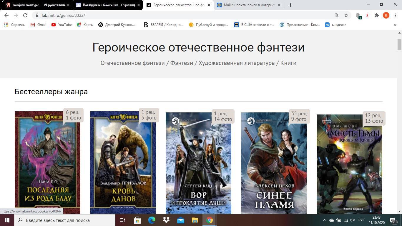 Прошло пару недель продаж романа "Кровь данов" - пока только в Лабиринте. Не знаю, когда книга доберется до книжных магазинов. Тем временем, роман ворвался-таки в верхнюю десятку рейтинга "Героическое отечественное фэнтези" в октябре 2020.