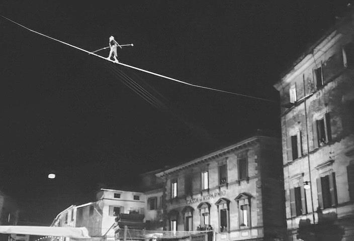 Так провозглашали мы в детстве, когда собирались совершить нечто особенное на глазах товарищей.  - Выступает Дзампано! – и прыгали в воду с пятиметровой вышки. Чаще всего «солдатиком», но некоторые отваживались и «ласточкой». - Выступает Дзампано! – и шли по узкой доске на трёхметровой высоте в спортгородке танкового полка в городе Кушка. - Выступает Дзампано! - стойка на руках. - Выступает Дзампано! – кувырок через голову или «колесо». - Выступает Дзампано! – соскок с турника из виса вниз головой. На глазах товарищей – это обязательно. Ещё лучше – и девчонок. А иначе зачем вообще что-то провозглашать? Останься один и кувыркайся, сколько душе угодно. Оттачивай технику. Молча. Нет, без зрителей, не интересно. Но почему Дзампано?! Кто он такой - Дзампано?! В детстве этот вопрос меня как-то не волновал. Дзампано и Дзампано, мало ли. Все говорят, и я повторяю, - обычное пацанское дело.  Но вот прошло пятьдесят лет, я вспомнил об этом и решил всё-таки выяснить. Ответ нашёлся быстро. Ответы на многие вопросы вообще не проблема в наше время интернета, поисковиков и википедии. Дзампано оказался главным героем знаменитого фильма великого Федерико Феллини «Дорога», вышедшего на экраны ещё до моего рождения, в 1954 году.  Циркач-силач, разрывающий ни груди цепи к восторгу изумленной публики – это и есть Дзампано! Сыграл его Энтони Куинн, а его подругу Джельсомину – Джульетта Мазина. Тайна имени Дзампано была раскрыта. Но вот фильм я до сих пор так и не посмотрел. Наверное, мешает время. То самое время, что лежит между мной тогдашним и теперешним. Но когда-нибудь я через него обязательно  перешагну и посмотрю фильм. Это будет честно.