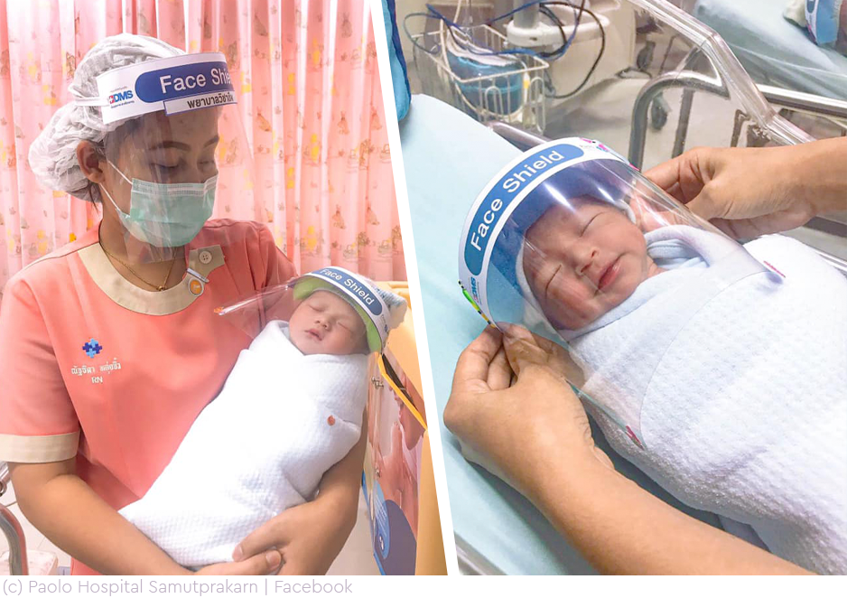 А такие прозрачные щиты-маски придуманы для новорожденных малышей.