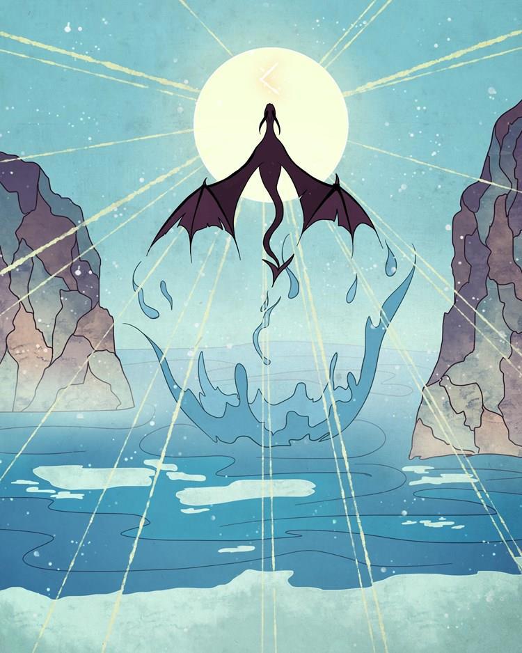 Ей стало нестерпимо жарко. Она сняла с ног яры, но обледеневший берег не обжигал холодом ее ступни. Она скинула теплую рубаху и вошла в соленые воды. Ей было хорошо – лед зимы обратился в ласковый покров, который успокаивал палящий нутряной огнь, от воды вокруг нее пошел пар. Борга нырнула и поплыла в глубины, радуясь нахлынувшей силе и безудержной свободе. Она теперь не боялась ни холода, ни огня!