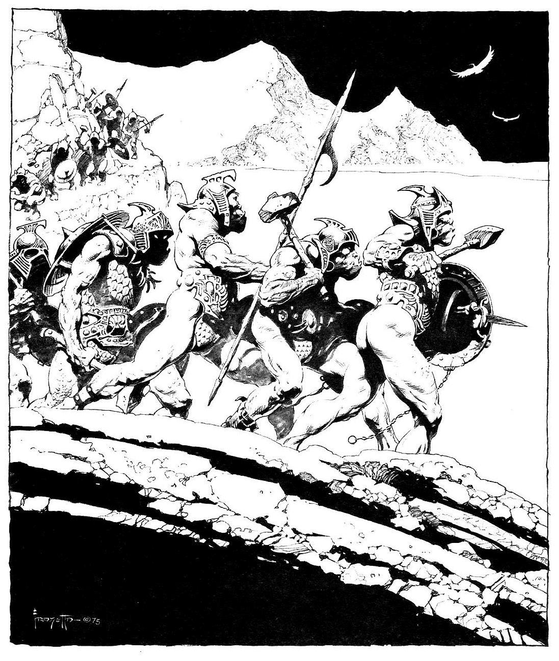 Такой вот яркий художник. Но лично для меня вишенкой на торте стал факт, что в своё время он брался за иллюстрации к «Властелину Колец». Уже зная стилистику Фразетты, я бегом побежал смотреть его наработки. И Фразетта не подкачал!