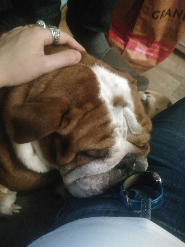 А я пока примерно в таком состоянии - причём ладно б по бухлу, нет, по болезни:))) Кстати знакомьтесь - мой личный символ года, бульдожица Плюшка.