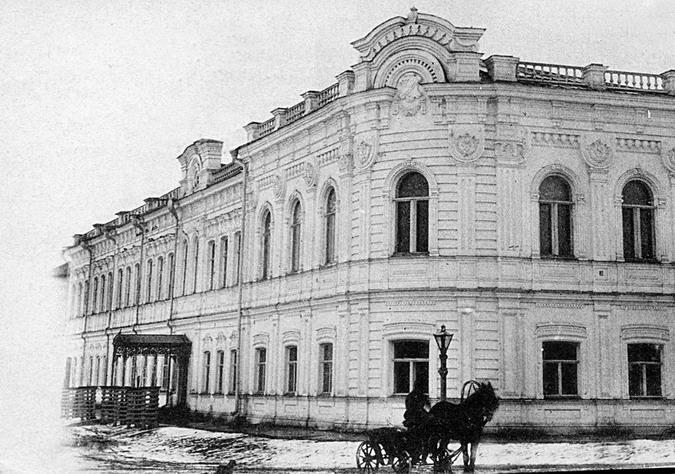 В 1914 году началась Первая Мировая, соседний слева особняк (построенный в 1912 году Дом купца Воронина - того самого, который выкупил руины и восстановил Дом Божескова) владелец отдаёт под офицерский госпиталь. Здесь, на Успенской площади, в 1915 году проходило торжественное вручение знамени, но видна и Мариинская гимназия: