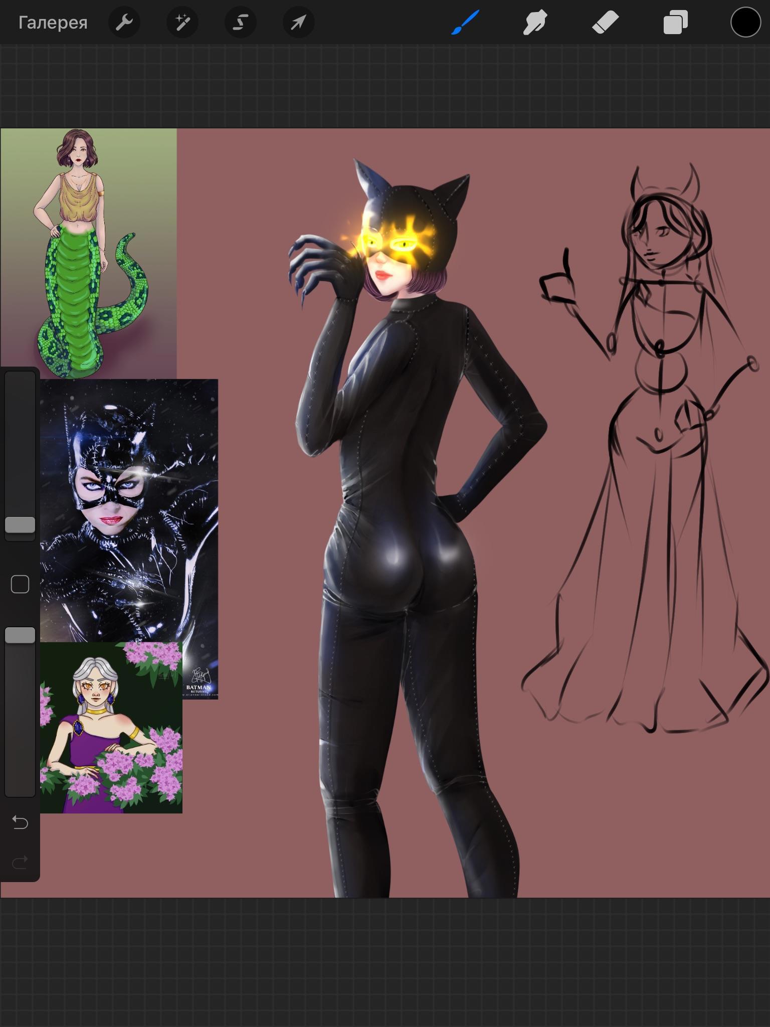 Исмем далась достаточно просто, а вот с образом Роксаны пришлось помудрить. Если честно, мне она не виделась ни в одном из костюмов. Но художик видит всё чётко. И было решено сделать Роксану демоницей