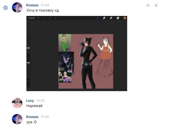 Мы хорошо общаемся и вот, пришла идея рисунка, который стали всяко воплощать. Я заметила, что многие принаряжают своих героев в костюмы, чтоб даже от их имени поздравить своих читателей\подписчиков\и тд. с Хеллоуином. Ну и как я могу это пропустить, а? Я за любой кипишь, так сказать.