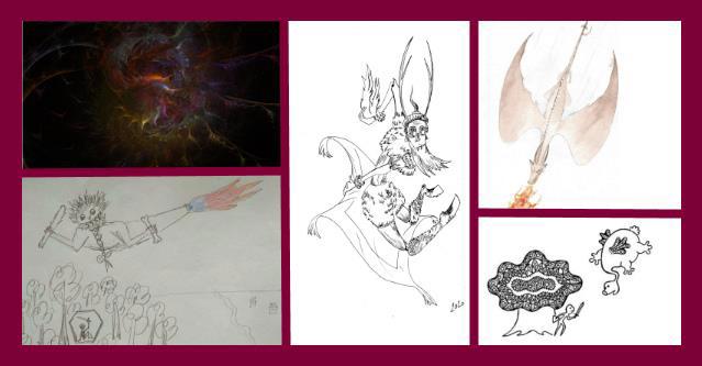 Все - абсолютно по-разному. Некоторые наши товарищи сказали, что не представляют вообще никак. Некоторые принесли картинки с драконами и прочими чудищами - вроде, примерно похоже. А те, кто сам нарисовал, не остановились даже на общей форме: похож ли Бармаглот на дракона, каким конкретно местом он пылкает и каким образом летит.