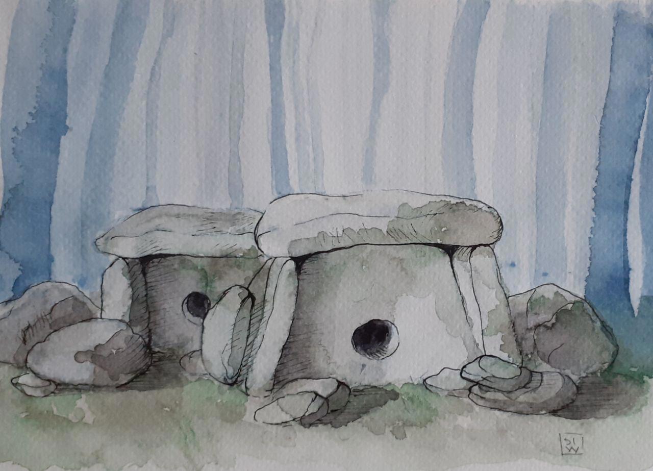 "Домовины были сложены из каменных плит, не имели ни окон, ни дверей, только небольшое отверстие посередине. Говорили, что в них жили духи Нави, сторожили покой леса. Время покрыло домовины мхом, а где-то так плотно окружило кустарником, что случайный путник мог пройти мимо, ничего не заметив."