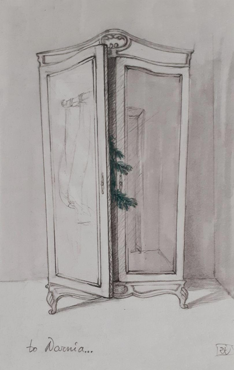 — Пусто, — сказал Питер, и они друг за другом вышли из комнаты... все, кроме Люси. Она решила попробовать, не откроется ли дверца шкафа, хотя была уверена, что он заперт. К ее удивлению, дверца сразу же распахнулась и оттуда выпали два шарика нафталина".