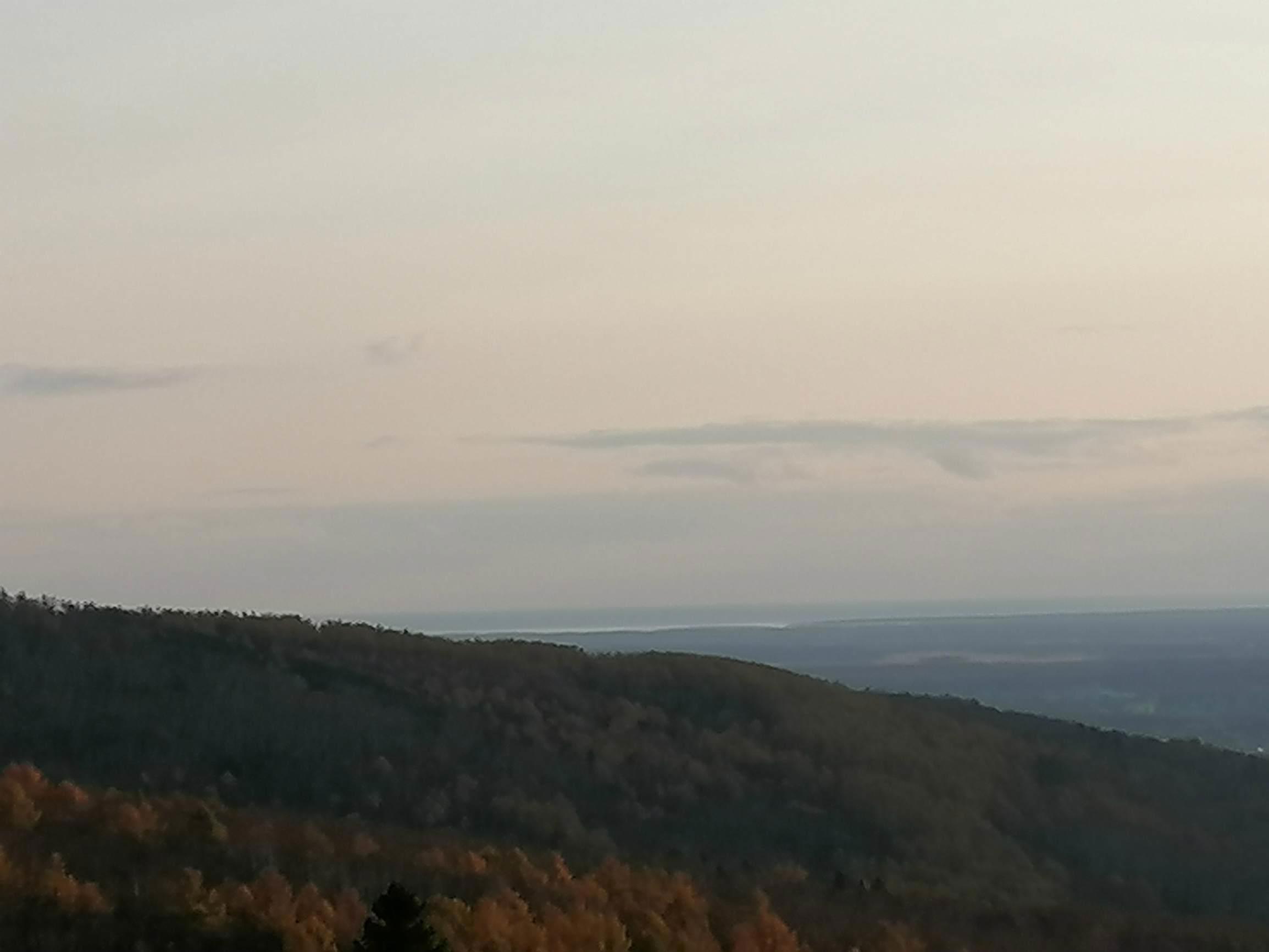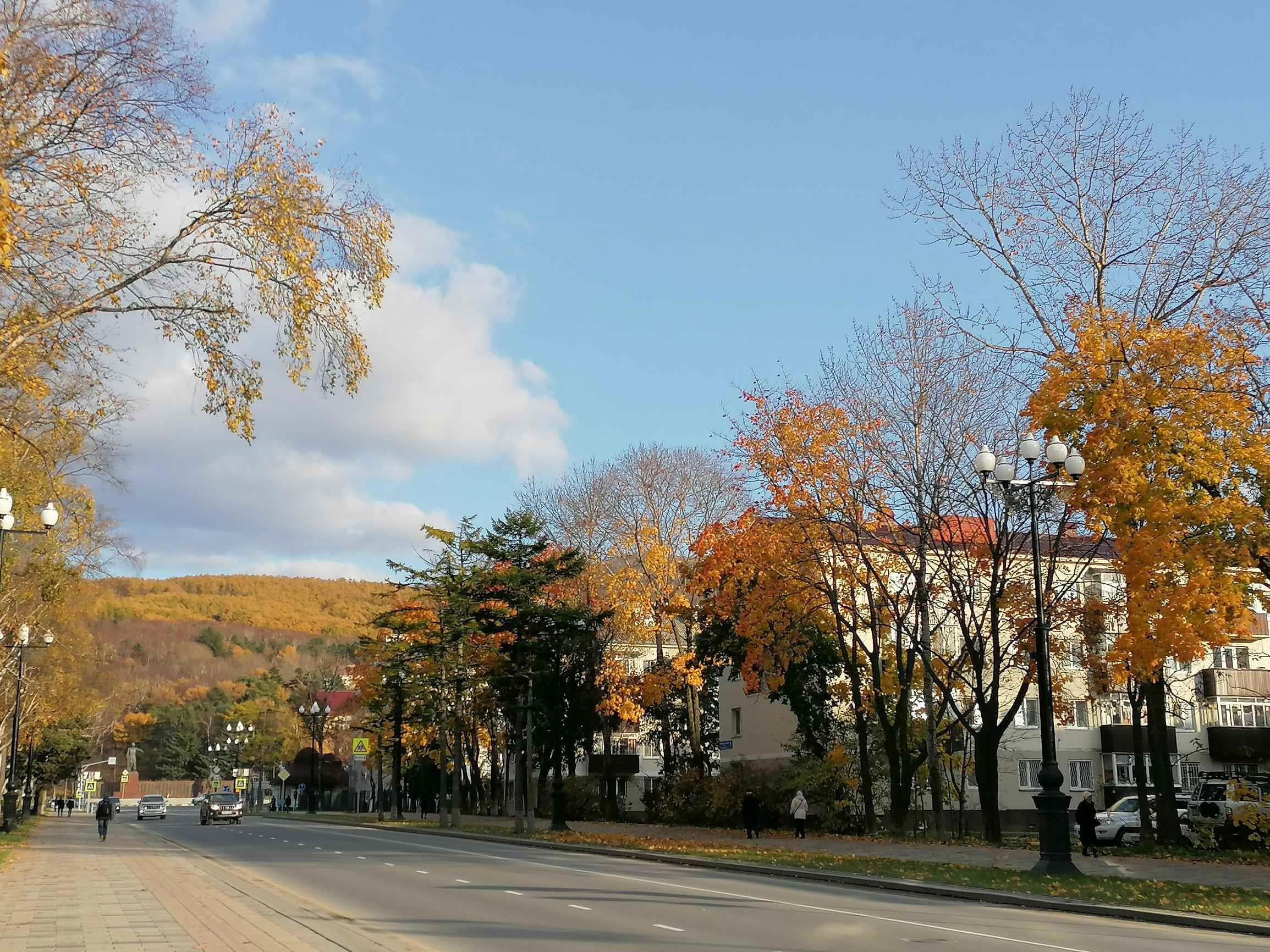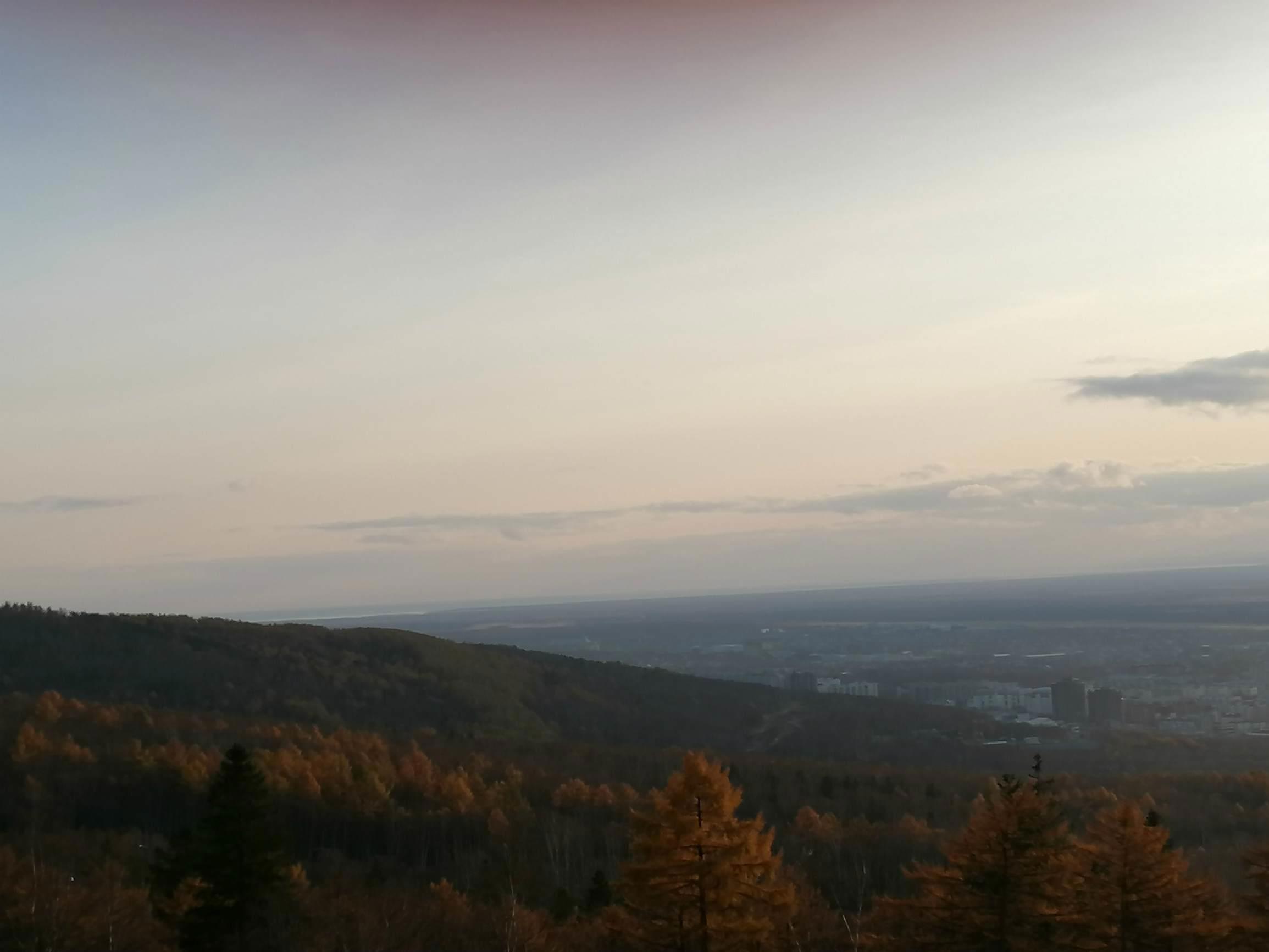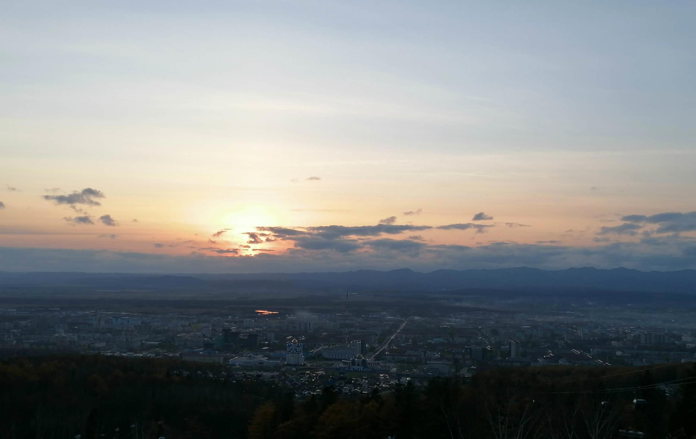 Обратите внимание, на следующем фото с левой стороны узкая голубая полоска, это залив Анива) Далеко видно, когда небо безоблачное) ну почти безоблачное)