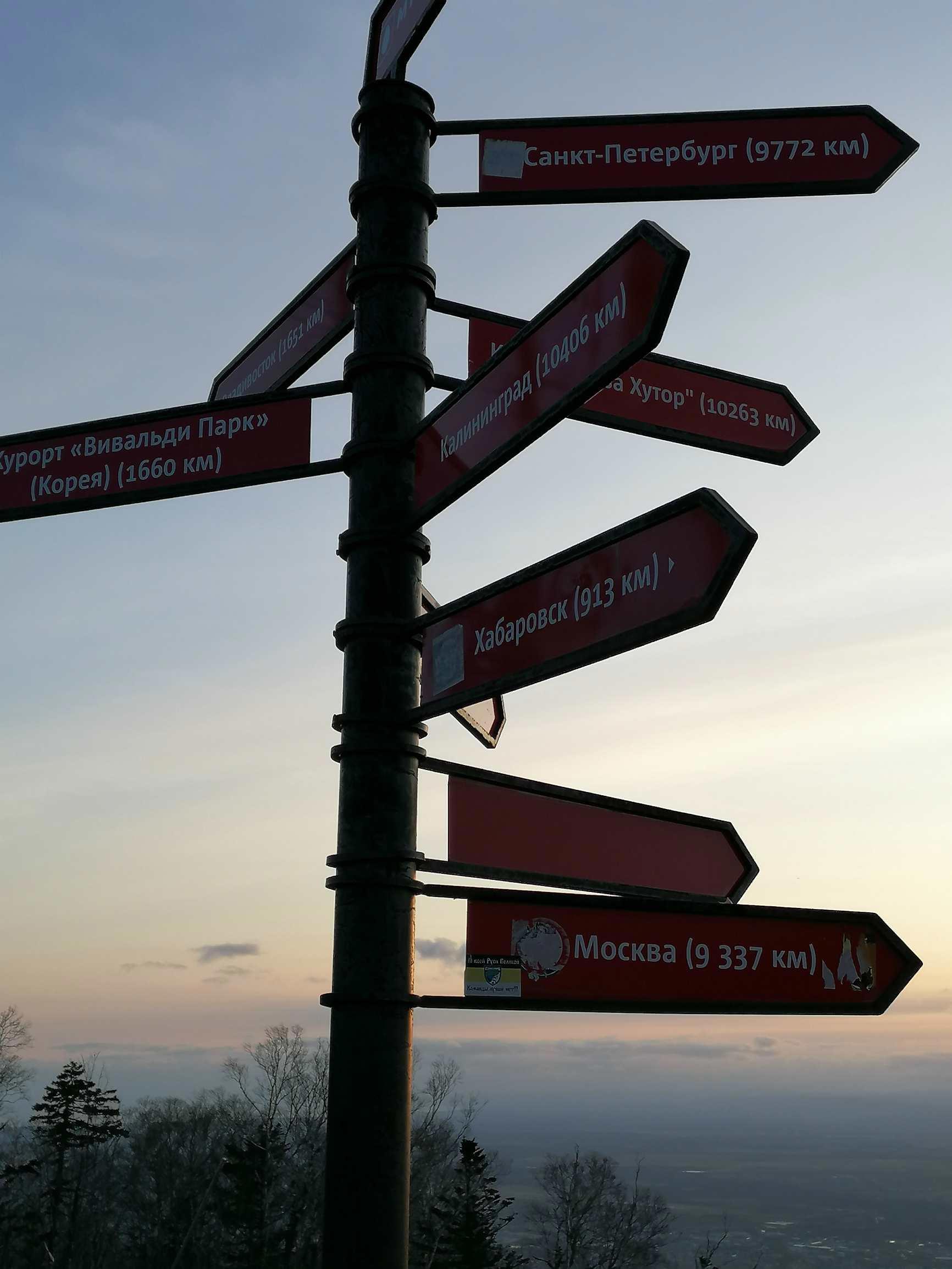 А теперь снова повернёмся в сторону города, а там указатели у смотровой площадки