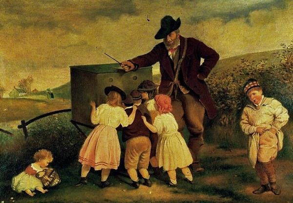 Когда-то это было обычным зрелищем на улицах, а первое упоминание о них было зафиксировано ещё в пятнадцатом веке. Заглянув в глазок можно было увидеть экзотических животных, сцены из народных комедий, картинки придворных церемоний, рассказы о разного рода деятелях и событиях, также показывались сцены из рая и ада. И стоило такое удовольствие недорого. В Лондоне, например, надо было заплатить всего лишь пенни.