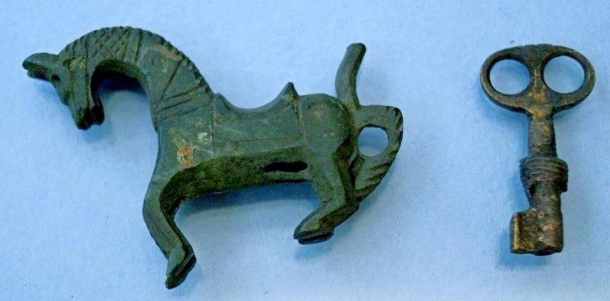 То есть, если нужно Заказчику, то можно было сделать и что-то весьма тонкое и сложное. Есть ещё одна категория находок, которая может рассказать об уровне технологий – это замки и ключи от них. Чаще всего, разумеется, находят то и другое по отдельности, но бывают исключения. Вот замок в виде лошадки и ключ к нему: