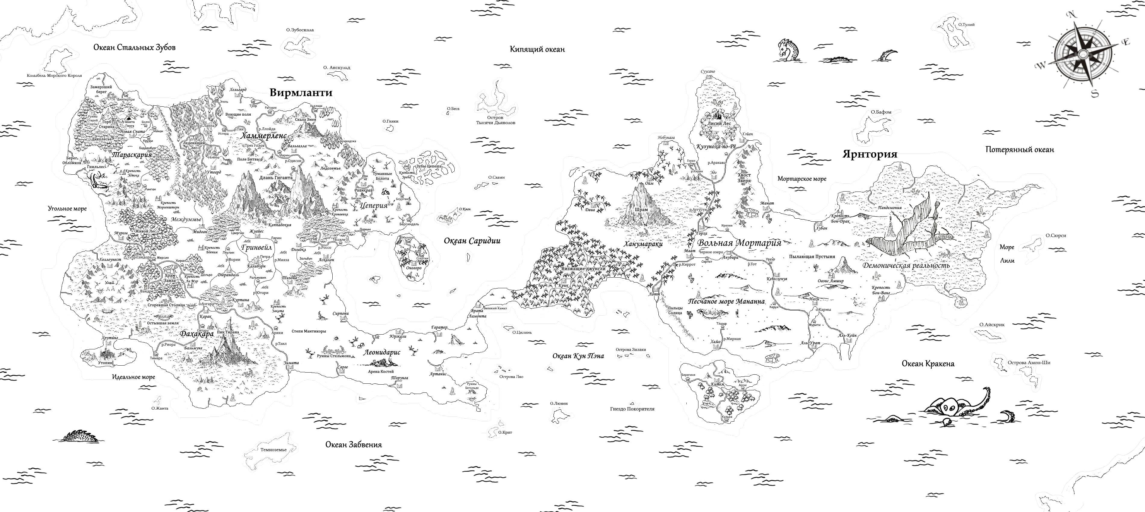 Ну и еще, мы поработали над картой мира и немного изменили её. Добавили больше поселений на западном континенте, кое-какие детали, названия и всякие мелкие изменения. Затронули они остальной мир, а в Тараскарии все осталось почти как было. Ну и шрифты немного поменяли.