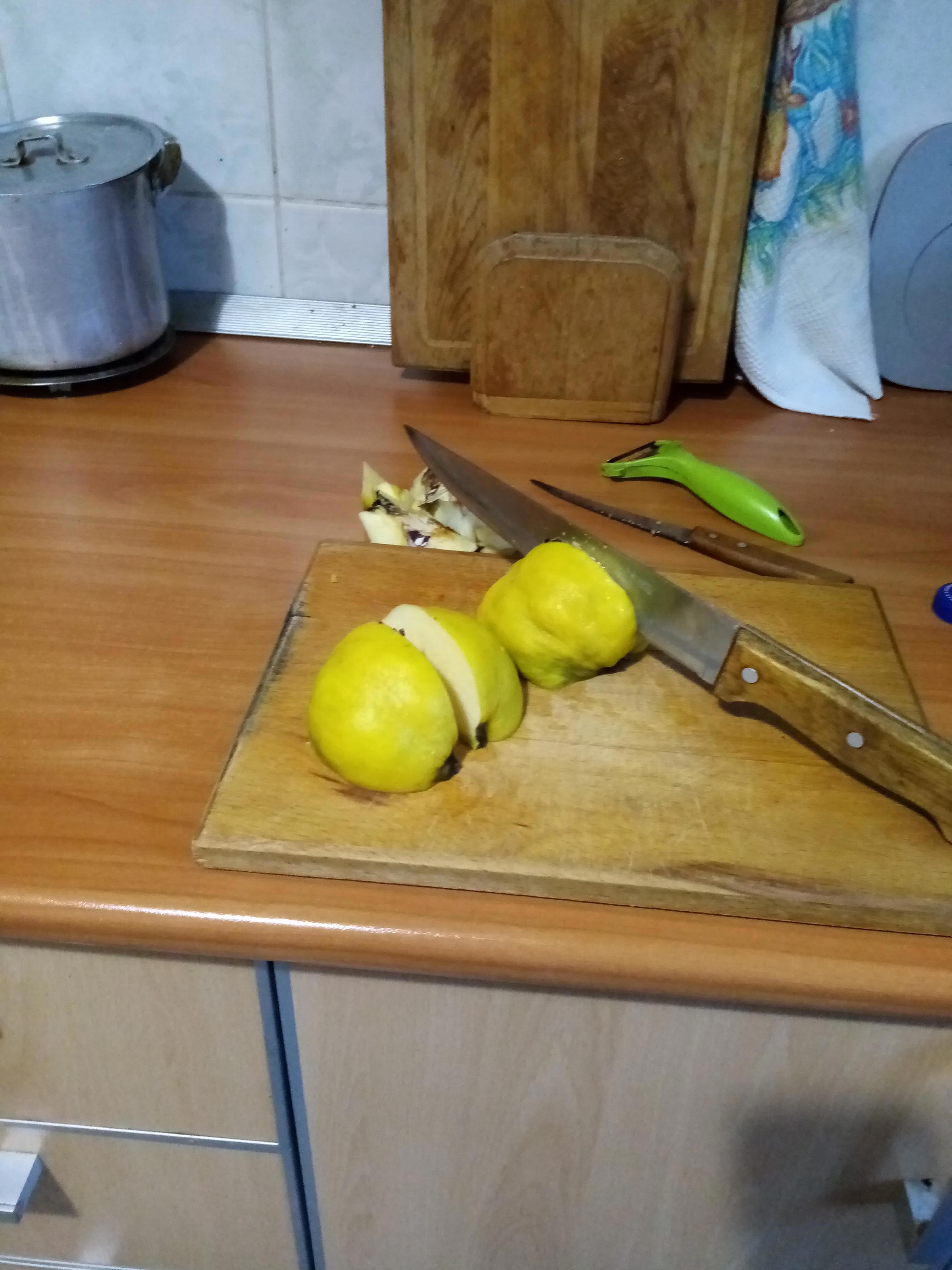 Это уже вторая айва, первую я разделала на кусочки и вырезала семена, то же самое делаю со второй.