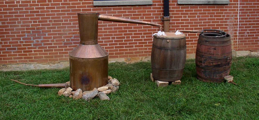Для затравки американская медная страсть и её схема. Именно такими аппаратами и гонят в лесу. Делают их кстати сами. Там меди на пару тысяч долларов. Крышка в виде шлема кое как справляется с укреплением, а сухопарник из старой бочки – (воздуха не озонирует) ну будем считать тоже помогает, как никак американские скрепы. Все не плотности замазываются тестом. Так задумано изначально. Работает и нам в принципе подойдет, но можно сделать лучше.