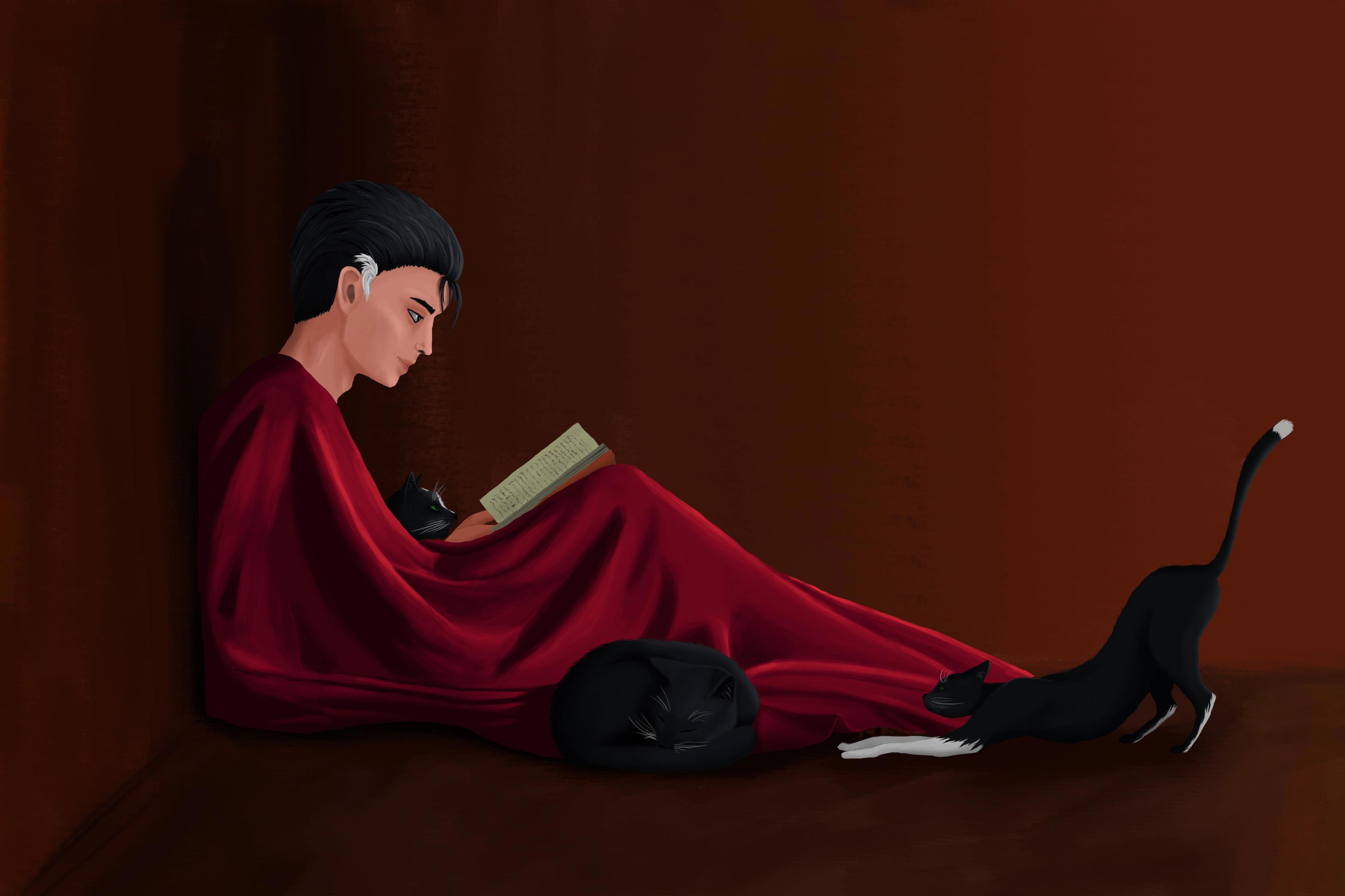 Начну, пожалуй, с книги "Меч и перья" и ее обворожительного бессмертного по имени Вес. К нему идет относительно много картинок, потому что, ну, он же такой лапочка, его невозможно не полюбить всем сердцем. Даже если он там кого-то потрошит, все равно его любишь.