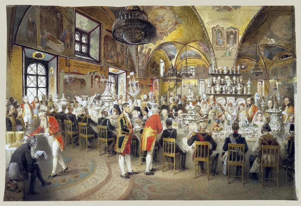 Автор: Олег ВоляПока я пишу проду к альт-Пугачеву. Предлагаю посмотреть на интерьеры Грановитой палаты. Мой персонаж кстати такой красоты не увидит ибо при Петре I зал использовали для проведения комедий и прочих увеселительных мероприятий. Поэтому настенную живопись на библейские темы забелили известью. Во времена Павла 1 стены обтянули тканью. И тлько в 1885 году раскрыли и реставрировали росписи . Да... Не зря Петруччо считали Антихристом.