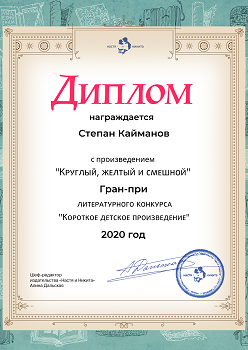 Рассказ "Круглый, желтый и смешной" получил гран-при на конкурсе изд-ва "Настя и Никита"
