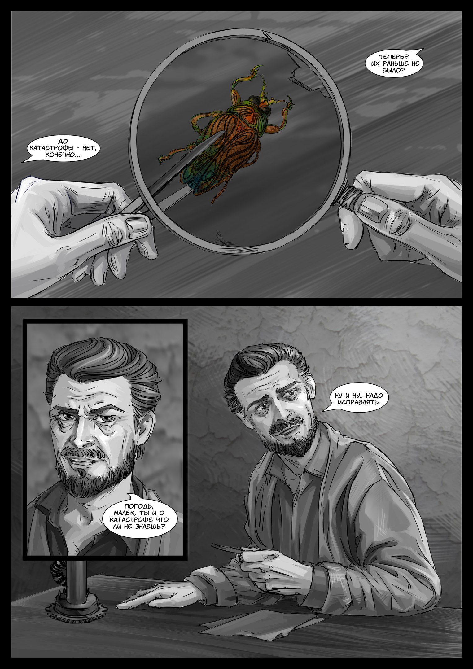 Как бы то ни было, спустя все страдания и безуспешную попытку упростить стиль, выпуск был готов. Сейчас я понимаю как много ошибок и неудачных решений я выбрала и сделала. Начинать сложную историю с пролога без экшена и действий- не лучшее решение. Разочаровавшись я ушла из тогда еще живого проекта как художник. Но у меня оставалась рыба на десяток выпусков и постраничники на парочку. Так что мы приступили к новому испытанию- поиску исполнителя. Несколько авторов пробовали, одна художница вообще покорила меня своим стилем и лайном, и ее уход забил последний гроб в крышку Стальной империи. Второй выпуск так и остался в виде постраничника.