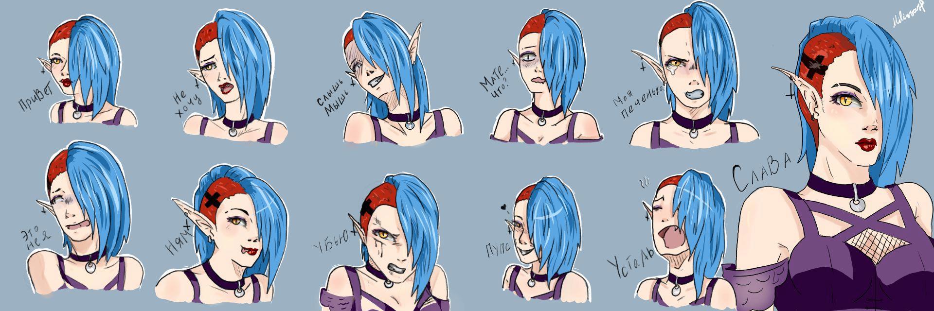 Автор: MilissartТак, как идет период адаптации к планшету я решила сделать работу, которую прежде не делала. Нарисовала 10 эмоциональных состояния моего персонажа Мираславы. И вот, что вышло...