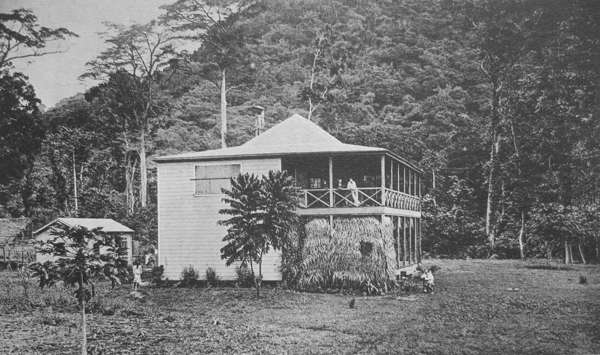 Стивенсон на веранде своего дома в Вайлиме (Самоа, около 1893)