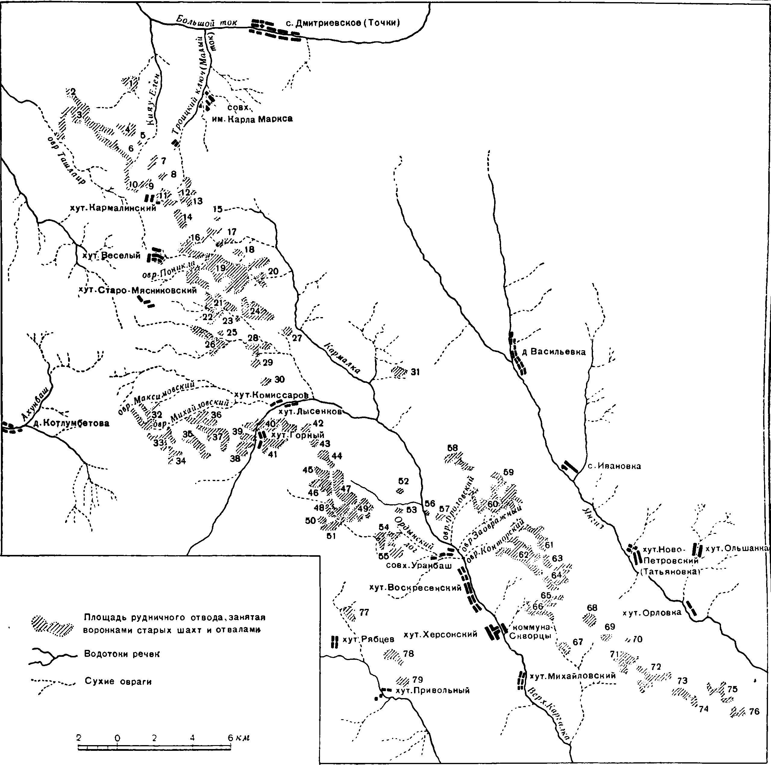 Вообще-то не сильно впечатляет. Куда масштабнее всё было в Каргалинском горнометаллургическом центре. Это на северо-запад от Оренбурга. Здесь начали добывать медную руду примерно 4 тысячи лет тому назад и занимались этим около тысячи лет. Общая площадь выработок около 500 тысяч квадратных километров. Вот неполная карта таких выработок составленная доблестными археологами за очень немалое время работ: