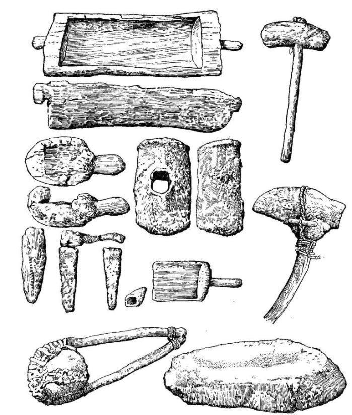 И всё это, заметте, было сделано на первых порах очень простыми деревянными и каменными инструментами. Вот как их реконструировали археологи длинными зимними вечерами: