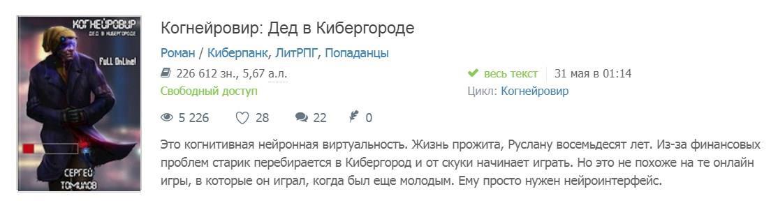 Автор: Серж ТомиловКоммерческий период «Когнейровир-1» завершен, роман в свободном доступе.