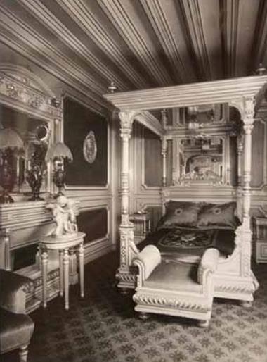 Даже на чёрно-белой фотографии видно, какая роскошь царила в этом заведении. Каждая из спален была выполнена в определённом стиле — японском, мавританском, индийском, китайском и других. Между прочим, проект и дизайн спальни в японском стиле выиграл приз на Всемирной выставке 1900 года.